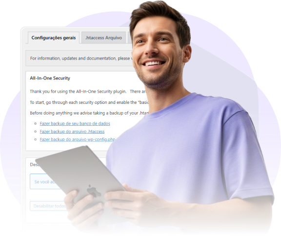 Com mais de 1 milhão de instalações ativas e classificação de segurança A+, o All In One Security é a escolha definitiva para proteger seu site WordPress.