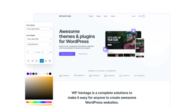Personalize cada detalhe do seu site, desde cabeçalhos e rodapés até cores e tipografias, sem limitações.