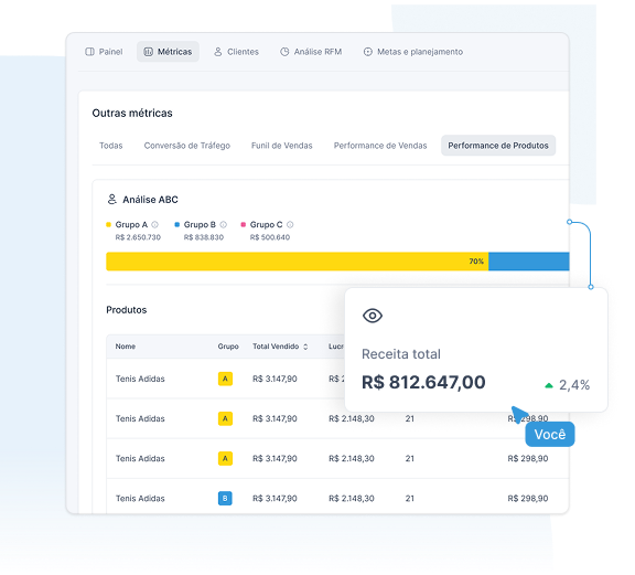 Tenha métricas unificadas por unidade ou grupo com dashboards claros de desempenho.