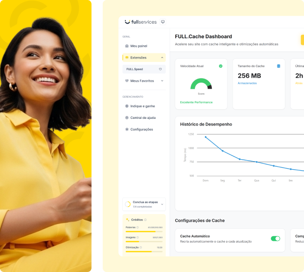 O FULL Cache garante velocidade, estabilidade e melhor ranqueamento.