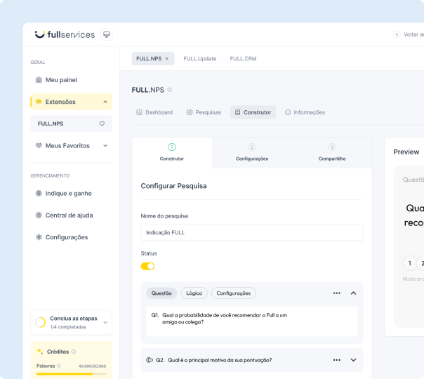 Colete, analise e melhore sua satisfação com o FULL NPS.