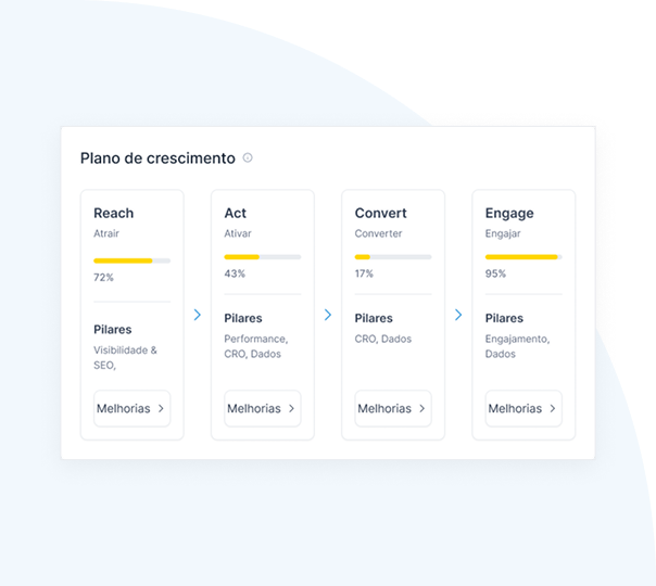 Siga um caminho claro de evolução digital com etapas bem definidas, garantindo melhorias contínuas em atração, conversão e retenção.