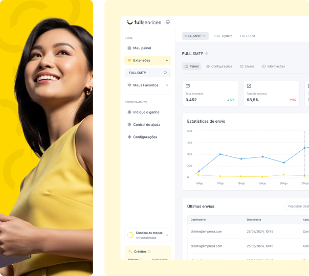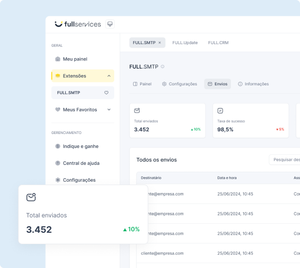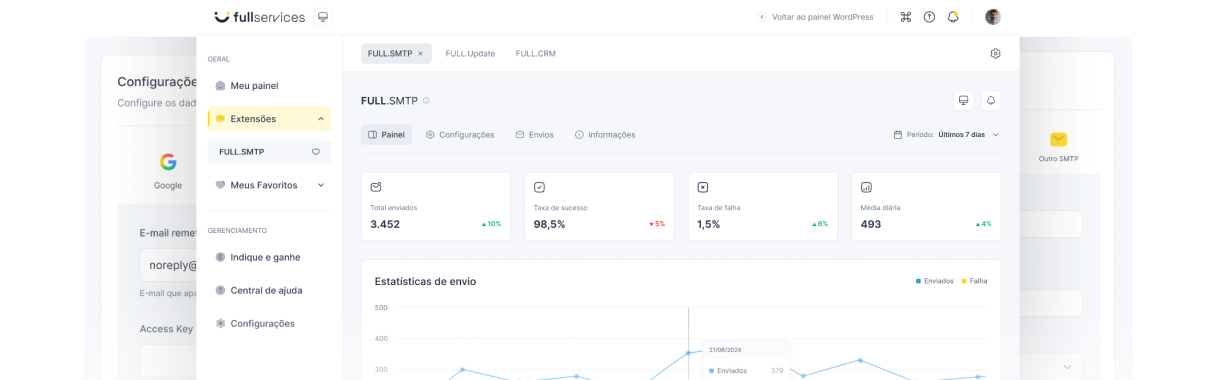 O FULL SMTP garante que suas mensagens cheguem com segurança, evitando que caiam em spam. Acompanhe métricas completas de desempenho e tenha total controle sobre cada envio, tudo de forma simples dentro do WordPress.