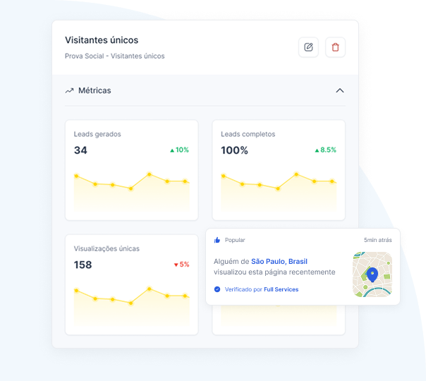 Acompanhe em tempo real o impacto das suas provas sociais.