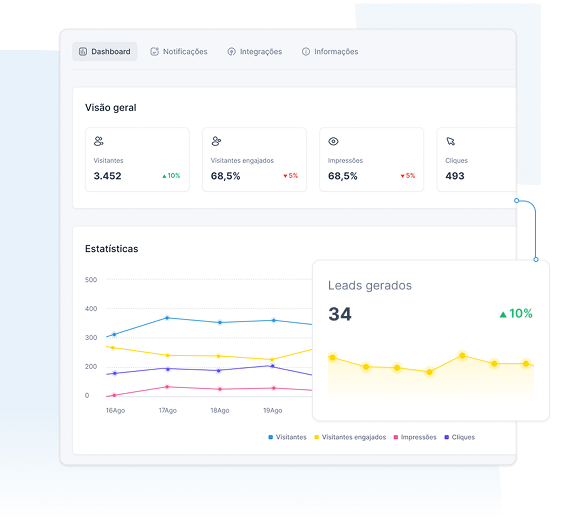 Acompanhe métricas de acesso, engajamento e impacto das suas ações digitais.