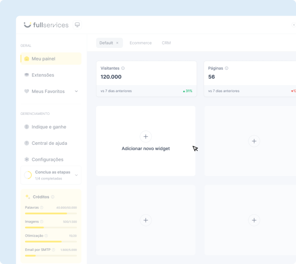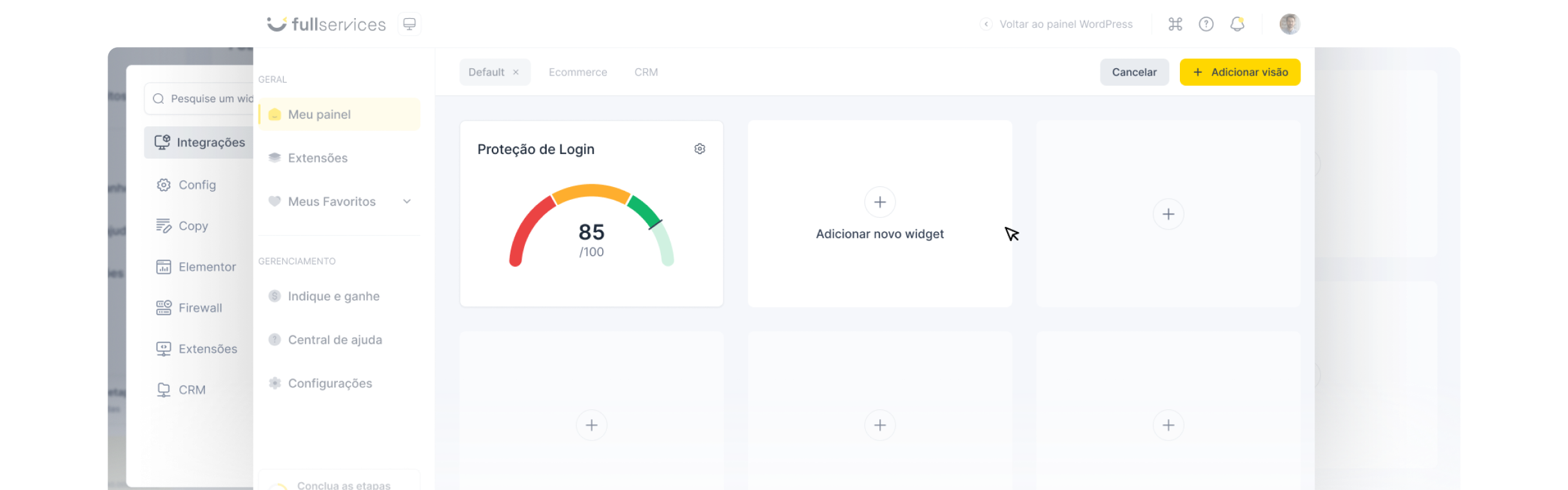 Monte seus próprios painéis, escolha os widgets que importam para você e tenha uma visualização única, organizada e sob medida.