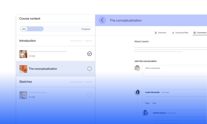 Crie cursos completos com lições, módulos, quizzes e conteúdo multimídia usando o construtor visual mais poderoso do mercado.
