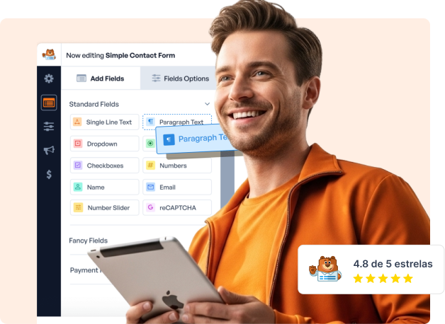 O construtor de arrastar e soltar mais intuitivo do WordPress. Crie formulários complexos em minutos com preview em tempo real e controles visuais para cada campo.